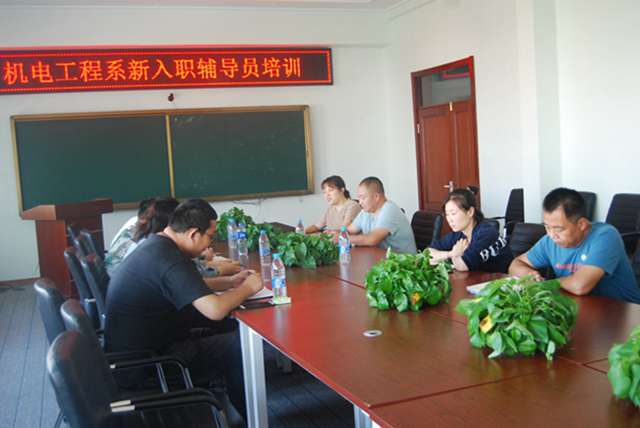 94-6日,机电工程系组织了新入职辅导员培训。系主任高爱利要求辅导员:一是要融入学生之中,发现问题、解决问题;二是辅导员之间要多沟通、多交流,取长补短、互相提高;三是关注学生的思想、学习、生活,尤其是学生的安全;四是要严守工作纪律、注意工作方法。孙晓芳老师为新入职辅导员介绍了学院的办学理念和管理制度,讲解了学院对辅导员的要求和应知应会以及学生手册相关规定;王虹老师讲解了辅导员“一日常规”和“八不准”以及系团总支特色工作;王连俊老师讲解了寝室管理相关要求。