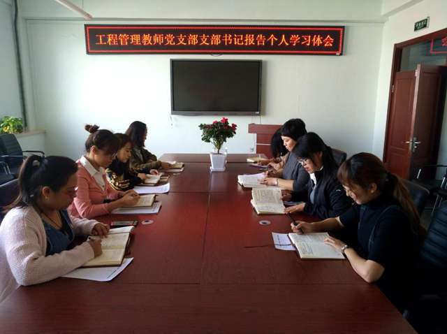 1023日上午,工程管理专业教师党支部“真学、真信、真做”读书小组召开学习交流会,支部书记张好徽就如何做一名合格的党支部书记向党员汇报,党员也分别结合学习内容交流分享感悟和体会,表示在今后的工作和学习中继续努力,不忘初心、牢记使命,争做优秀共产党员。