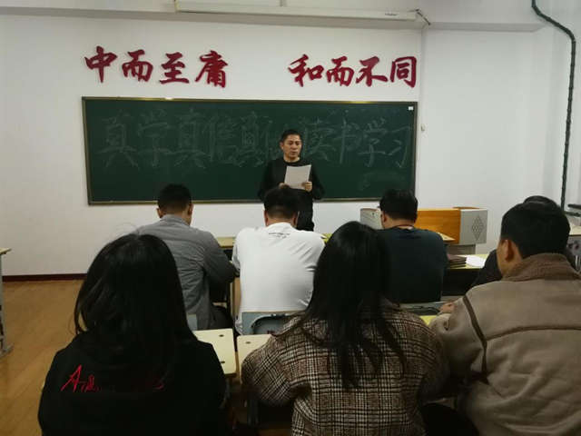 11月1日,工程管理专业教师党支部“真学、真信、真做”读书小组学习《习近平在庆祝中华人民共和国成立70周年大会上的讲话》原文。在支部书记张好徽领学后,每位党员做学习心得交流。
