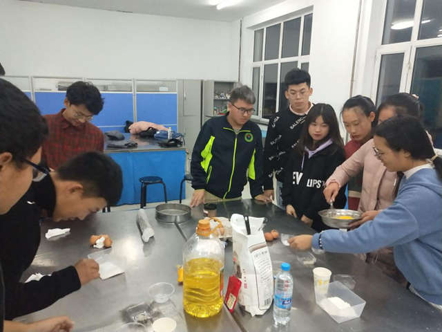 11月6日,绿色新起点社团组织了一次制作棉花糖蛋糕的专业体验,12名成员参加活动。指导教师和社团负责人为大家讲解了活动注意事项以及蛋糕烘烤前面糊的外观状态等,12名同学分为两组分别准备食品原料、清洗厨具、进行称量和烘烤等。在积极的动让手实践中,培养了同学们对美食制作的兴趣。