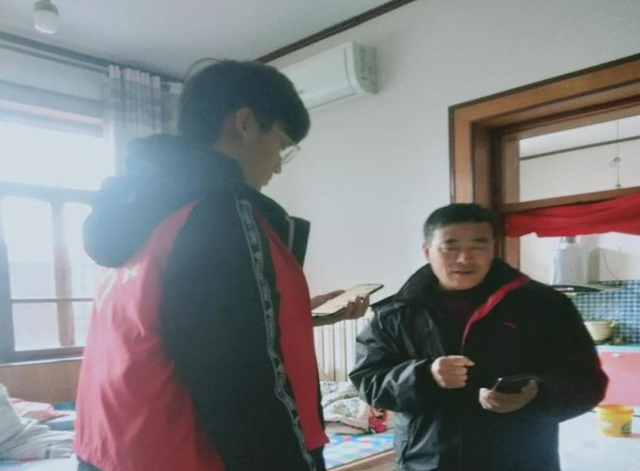 工管192班团员李广智在河北省黄骅市吕桥镇陈庄子村做疫情防控志愿者,参加入户走访登记并进行疫情排查。