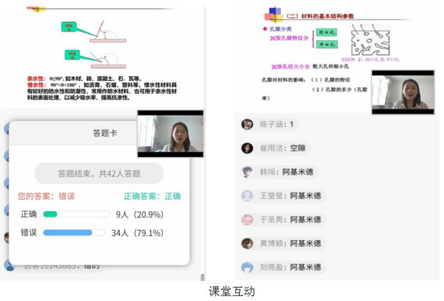由于新冠肺炎疫情的影响,线下课在线上开课。本学期工管191班、工管192班开设的《土木工程材料》课程,由专业教师郝丽娜讲授。经过前期的培训学习,郝丽娜老师依托超星直播客户端与超星学习通实施了自己的在线教学。她从学生的体验出发,对在线教学的方式、方法、内容进行了创新设计,形成了一系列诸如“学习目标卡”“学生预习指南”“土木工程材料学习秘籍”“学习评价量表”等流程文件,并将课程思政元素融入每堂课,贯穿教学设计和实施全过程——