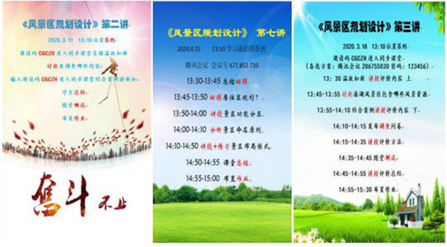 在线教学中,建筑工程系专业教师潘娜使用学习通+腾讯会议+QQ群信息化平台,通过具有“吸睛”特点的“娜”式课程设计,为风景园林171班学生讲授《风景区规划设计》专业选修课,收到良好教学效果。
