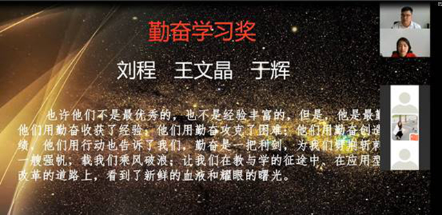 获得勤奋学习奖的教师刘程、王文晶、于辉也许不是经验丰富的,也不是教师中最优秀的,但是最勤奋的。3位老师用勤奋收获了经验用勤奋攻克了难关,用勤奋创造了业绩用行动告诉了我们——勤奋是一把利剑,可以披荆斩棘,有望成为在教与学的征途中、在应用型课程改革的道路上,正待喷薄欲出的新星