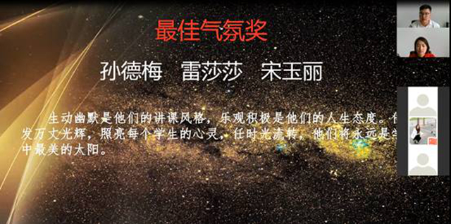 获得最佳气氛奖的教师孙德梅、雷莎莎、宋玉丽生动幽默是其讲课的鲜明风格,积极乐观人生态度散发出的光辉照亮每个学生的心灵,成为学生心中最美的“网咖”