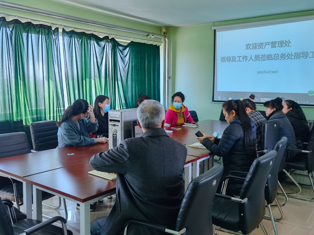 4月19日,学校资产管理处处长张磊、事务员李微娜、赵新荣应邀到体育场401会议室对总务处的资产管理工作进行指导,总务处全体工作人员参会。