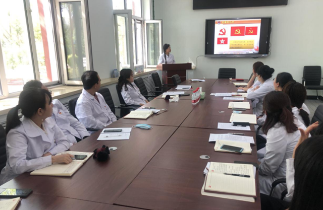 会上,张静同志为大家介绍了党旗的象征意义,并希望大家在镰刀与铁锤的交响中奋进与成长,在平凡的岗位中燃烧自己的热情,努力奉献,砥砺前行。