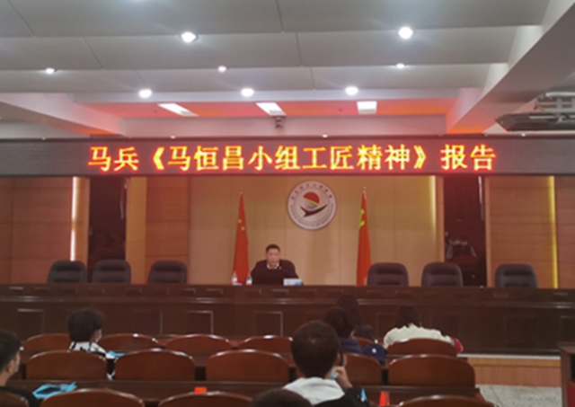 报告会上,马兵为全体学生介绍了马恒昌小组的发展历程、先进事迹,讲述了马恒昌曾组织的爱国主义劳动竞赛、民主管理、技术革新的故事,指出,“马恒昌小组的工匠精神,就是胸怀全局、艰苦奋斗的创业精神;奋发进取、开拓创新的劳模精神;团结协作、无私奉献的团队精神;勇于攻关、绝不放弃的爱国主义精神。他表示作为马恒昌小组的后辈,他和他的同事要学习马恒昌精神,坚守在车间一线岗位,向复杂的工艺挑战,在技术上不断创新。作为从事机械行业的前辈,他祝愿伟德体育官网的学生成为祖国的栋梁之材。