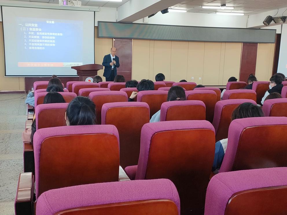 在讲座中,郭老师分别从公共安全、食品安全、交通安全、健康安全、居住安全以及人身安全六个方面进行讲解。郭老师结合当下发生的典型火灾案例,图文并茂地讲解了消防安全的重要性和火灾造成的悲惨后果,指出,很多火灾的造成都是因为受害者存有侥幸心理、消防安全意识不强等问题,比如寝室不拔电源,使用违规电器等,并对日常生活中面对隐患时的具体处理方法做了详细的说明。