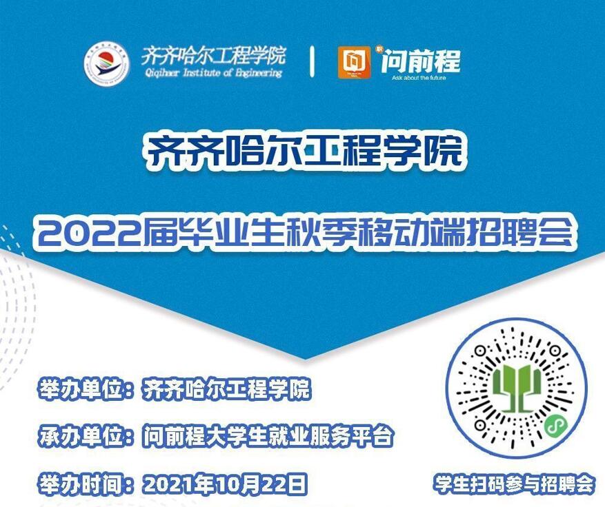 为做好2022届毕业生就业工作,学生发展中心从10月份开始,联合黑龙江省教育厅、黑龙江省大学生就业创业指导中心、龙江学子就业平台、浙江丽水、问前程大学生就业服务平台将陆续开展五场线上招聘会。此次线上招聘活动将持续两个月,至11月底结束。