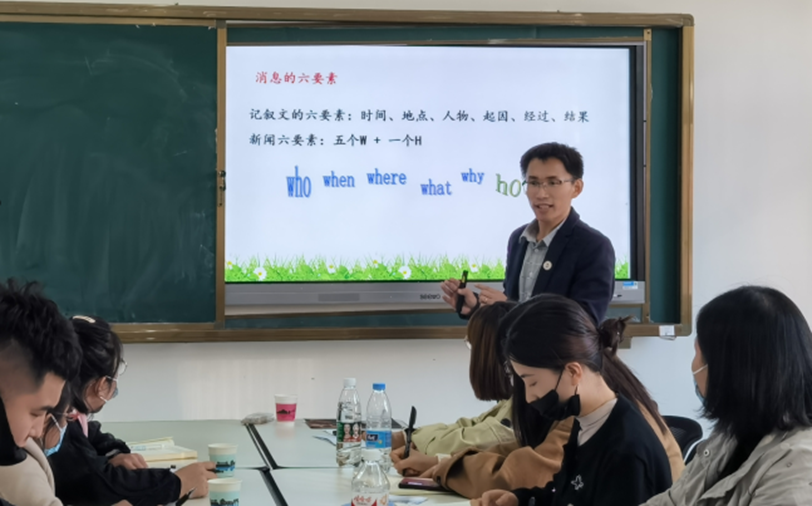 科研处宋庆永老师作《消息写作》的专题训练,从内容、结构、用词等写作常识入手,结合个人报道,指导大家如何正确的写新闻报道。