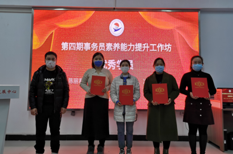 11月12日下午,由教师发展中心组织的第四期事务员素养能力提升工作坊结业式,在二号教学区2102室举办,教师发展中心负责人李文禹主持活动,来自学校各部门21位事务员经过考核,获得结业证书。思政部陈丽君、教务处凌冬雪、建筑系李薇、资产处胡士秀、人事处张晓雯被评为优秀学员。