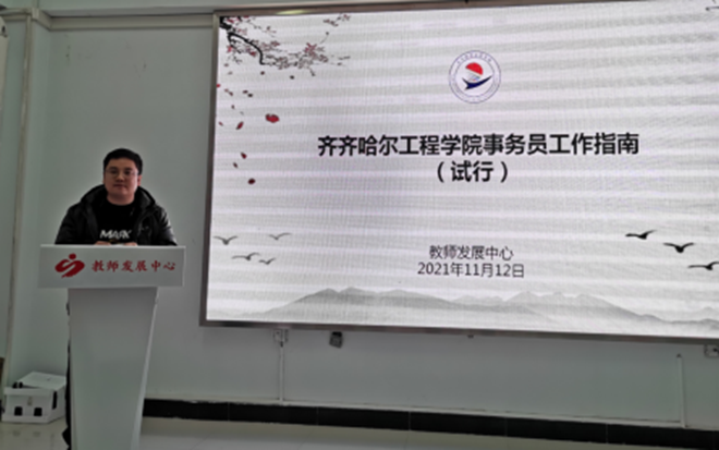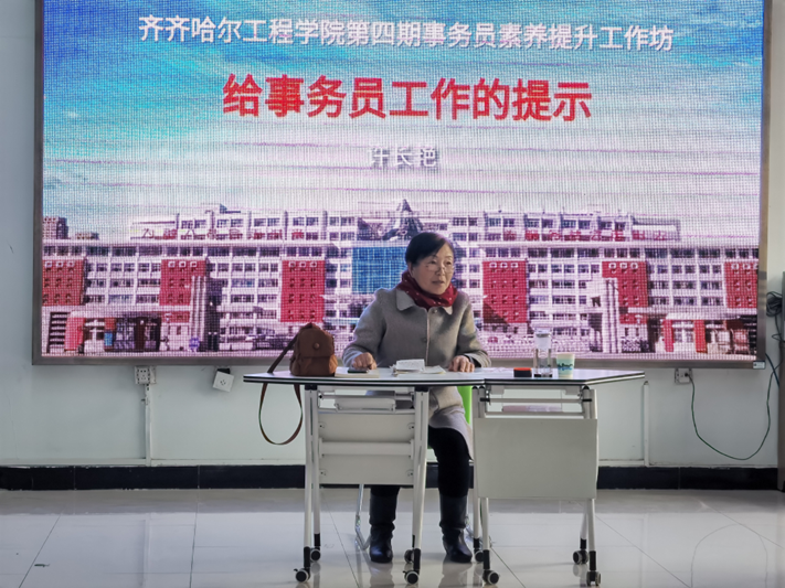 学校党委原副书记许长艳副做题为《给事务员的工作提示》的主题讲座,从自己的第一份事务性工作引出事务员工作的重要性,分别用案例总结了作为事务员工作态度要端正,工作要有计划性和在工作中找到规律性等宝贵经验。