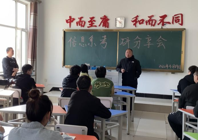4月14日下午,信息工程系在一号教学区1405室召开考研分享会。系学生工作副主任孙晓芳与计科2019、2020级同学共70余人参会,计科专业辅导员郭磊老师主持。