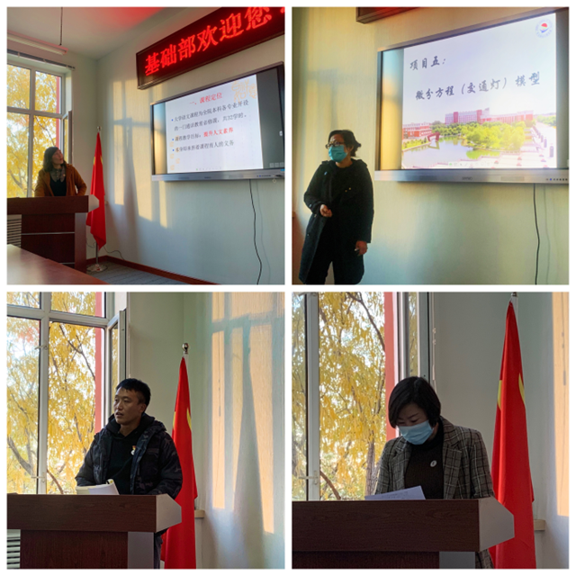 10月27日下午,基础部举办课程思政教学竞赛,部门全体教师参加。 为加强党支部建设,发挥党员教师先锋模范作用,强化人才培养中的“隐性教学”,基础部前期依据支部党员分布情况,分别组成语文、物理、数学、体育、英...