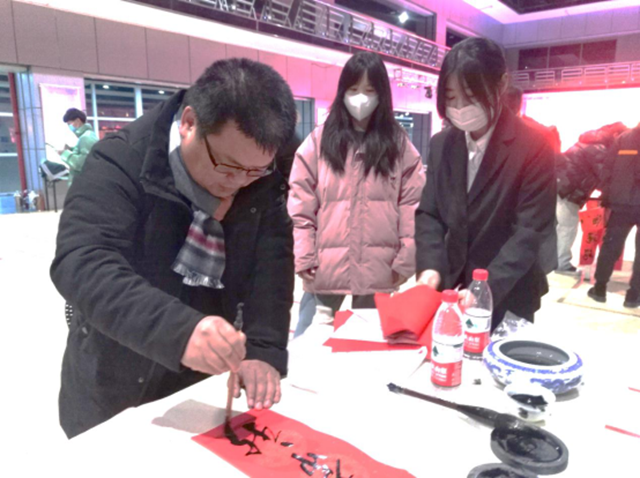 12月28日16点,刚刚结束期末考试的部分师生,戴着口罩,笑眯眯地走进学生活动中心,他们手持精心设计的“领取春联一副”免费券进入现场,所见所闻尽是温馨与祥和,几张桌子间隔数米距离排列有序,纸墨笔砚早已备齐,...