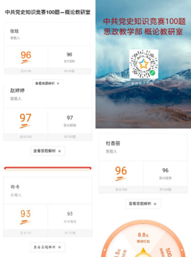 为深入学习贯彻习近平总书记在党史学习教育动员大会上的重要讲话精神,高标准高质量完成学习教育任务,以实际行动迎接中国共产党成立100周年,5月25日,概论教研室开展中共党史百题知识竞赛。 本学期开学以...