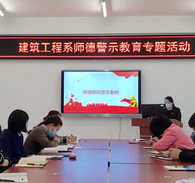 根据《建筑工程系师德专题教育计划》的要求,建筑工程系于11月2日下午,在二号教学区2409会议室开展了建筑工程系师德专题教育系列活动——师德警示教育。建筑工程系主任陈景鑫出席会议,建筑工程系党总支书记王丽萍主...