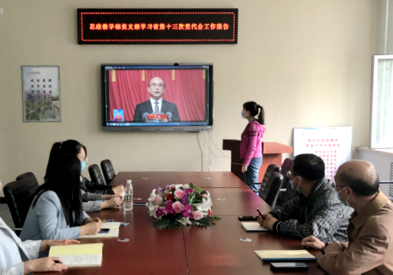 5月24日下午,思政教学部党支部全体党员在三号教学区1211室开展深入学习省第十三次党代会工作报告精神。全体党员会上交流学习心得,分享学习体会。 魏军老师说:“作为一名思政课教师,我们要不忘初心,牢记使命,把...